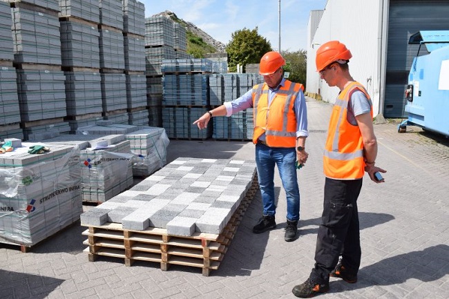 Het ontwerp moet zo zijn dat elke laag stenen of tegels met een klem door een aannemer machinaal gelegd kan worden. In geval van twijfel is het verstandig om van tevoren te overleggen, samen met een projectadviseur en de materieel/klemmenleverancier. Omdat verschillende kleuren en verschillende formaten stenen en tegels in afzonderlijke productieruns gemaakt worden, kunnen tussen de verschillende producten minimale maatafwijkingen voorkomen die binnen de maattolerantie vallen. Dit kan echter wel tot gevolg hebben dat als men te veel lagen stenen op een pallet stapelt, dat de bovenste lagen moeilijker door een klem gepakt kunnen worden. Daarom stapelen wij niet hoger dan 5 lagen. Dit leidt tot meer pallets op een werk dan gebruikelijk.