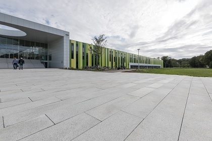 De schaal, de kleurschakeringen en verschillende bewerkingen maakten dit een unieke opdracht. Ponsen: "de architect was direct heel duidelijk en wilde subtiele kleurovergangen, maar met variatie in lichtval om de waterreflectie na te bootsen. De kleurovergangen hebben wij bereikt door in basis drie mengsels te ontwerpen met één soort groene natuursteengranulaat, met elk een eigen cementsoort variërend van licht, midden en donker. Voor de variatie in lichtval heeft elk mengsel een van onze drie luxe nabewerkingen ondergaan: uitgewassen (Breccia), geborsteld (Lucida) en geslepen (Liscio).