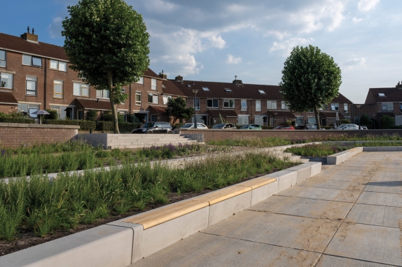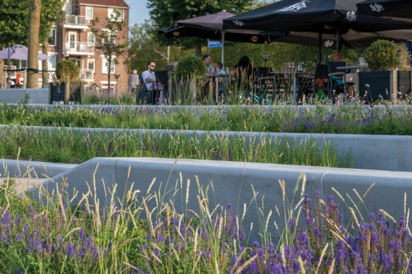 Het omvangrijke project bevat onder meer Solids & Seats parkbanden met bijpassende trede-elementen en verloopbanden. De lagere Solid Beams zijn als opsluiting en bescherming van de plantvakken rondom de bestaande en nieuwe bomen toegepast.