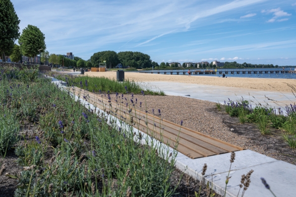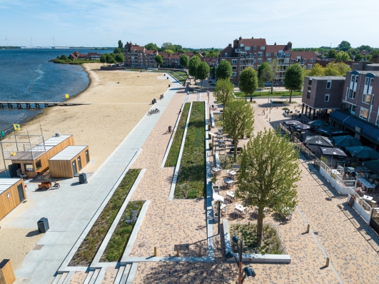 De Zomerkade is bijzonder en uniek omdat het aan het open water ligt met een fantastisch strand. De inrichting van de openbare ruimte sloot echter niet aan op het strand en de kust. 'Het had de uitstraling van een stenige jaren ’80 wijk met harde kademuren, veel auto’s en weinig groen", aldus Melle van Dijk van OKRA.