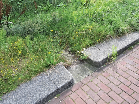 De rijwegen wateren af op de lager aangelegde wadi's via een afwateringsband. Deze band kenmerkt zich door een steeds wijdere en aflopende goot: 40 cm breed en 1 cm diep aan de voorzijde, 44 cm breed en 1,4 cm diep aan de achterzijde. Door deze vorm stroomt water makkelijker af. Een ander voordeel is dat deze banden makkelijk in te passen zijn in een bandenlijn.