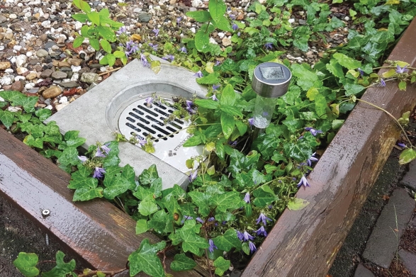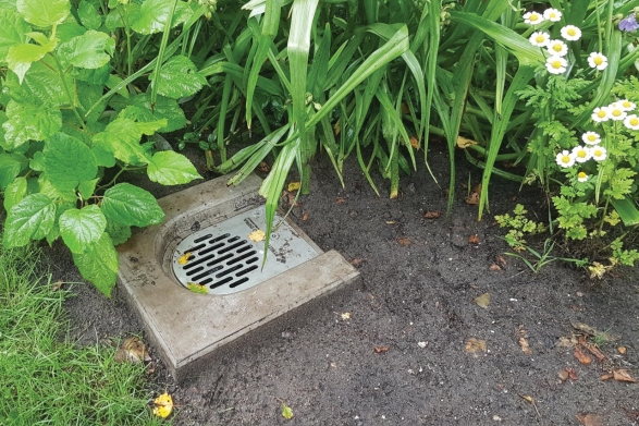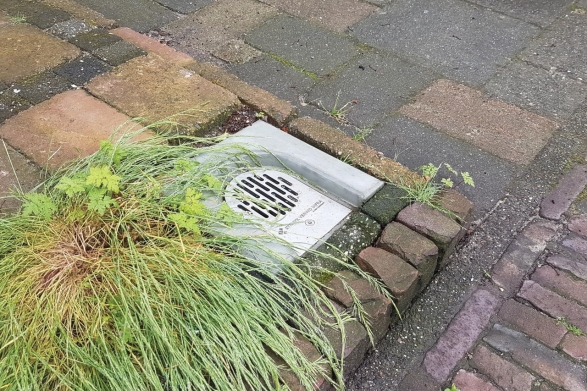 Voor afkoppeling van woningen is gekozen voor hemelwaterafvoer via de Well-O-Edge. Projectleider Cas Verkade: 'Voor tuinen die moeilijk doordringbaar zijn, hadden we de oplossing om vanuit de regenpijp direct ondergronds te gaan met een geperforeerde buis van 24 mm tot aan de rand van het perceel. Aan die perceelrand werd de uitstroomtegel Well-O-Edge geïnstalleerd. Via de Well-O-Edge loopt het hemelwater over het trottoir naar de straat. Het systeem is zo gedimensioneerd, dat de buis bij normale regenbuien het water afgeeft in de grond en dat bij de extreme buien in Laren - volgens berekeningen eens in de twee jaar - het water via de Well-O-Edge naar het nieuwe hemelwaterriool wordt afgevoerd. Goede eigenschappen van de Well-O-Edge zijn dat deze heel praktisch is en er esthetisch gezien mooi vlak en strak uitziet. Het past in het straatbeeld van Laren met veel heggetjes, inritten en beplanting op de percelen.