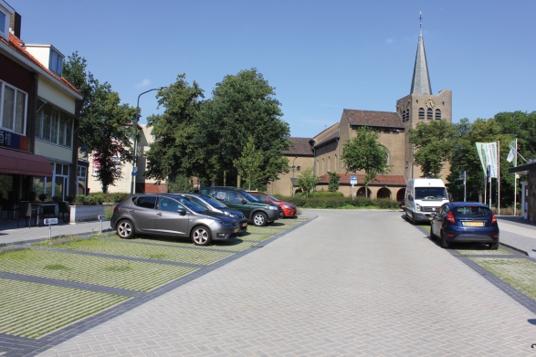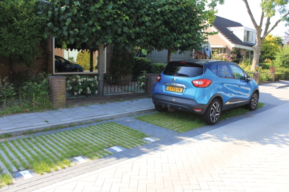 Voor een deel is gekozen voor hergebruik van straatstenen in de rijbanen. Parkeervakken zijn vergroend met Hydro Lineo, groenbestrating met een 40% begroeibaar oppervlak. Aansluitend op de langsparkeerplaatsen zijn nieuwe groenvakken aangelegd.