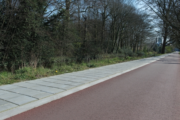 Fokke Ypma, ontwerper openbare ruimte bij Ingenieursbureau Den Haag bedacht de ‘vergevingsgezinde rijwielpadband’. Deze rijwielpadband met een afmeting van 3/12 x 20 cm loopt slechts 3 cm omhoog over een breedte van 9 cm en sluit goed aan op opsluitbanden van 12 x 25 cm. De helling van 1:3 is veel kleiner en dus veiliger. De nieuwe rijwielpadband werd bij wijze van experiment gelegd op de Waldorpstraat in Den Haag. Het experiment blijkt zo succesvol dat de nieuwe vergevingsgezinde rijwielpadband nu de standaard is voor heel Den Haag en tussen alle fietspaden en trottoirs komt te liggen. Ypma: ‘We hebben nu een goede en veilige oplossing die én een goede scheiding aanbrengt tussen fietspad en trottoir, maar nog veel belangrijker, een stuk veiliger is voor fietsers!