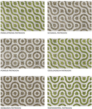 Door de innovatieve vormgeving kan de Virage steen in diverse originele en dynamische patronen worden gestraat. De Virage stenen gelijkmatig in hoogte, haaks en in lijn aanbrengen. Mirum rondom goed opsluiten zodat het legpatroon niet kan verschuiven. Afhankelijk van de ligging, omliggende betonbanden met steunrug van stampbeton versterken. De Virage stenen dienen bij voorkeur minimaal 35 dagen te zijn uitgehard, alvorens te verwerken.Machinaal straten