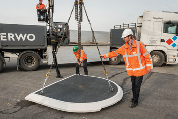 • aangebrachte hijsvoorzieningen: schroefhulzen geschikt voor M20 hijsringen.• bevestigingsgaten voor verankering met sparing voor schroefbout M16.