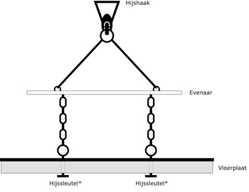 | • Vloerplaten dienen opgenomen en gelegd te worden met een vacuüm hijssysteem of met behulp van evenaar en bijpassende gecertificeerde hijssleutels van Struyk Verwo Infra. Andere hijsmiddelen en hijssystemen worden niet geadviseerd. |