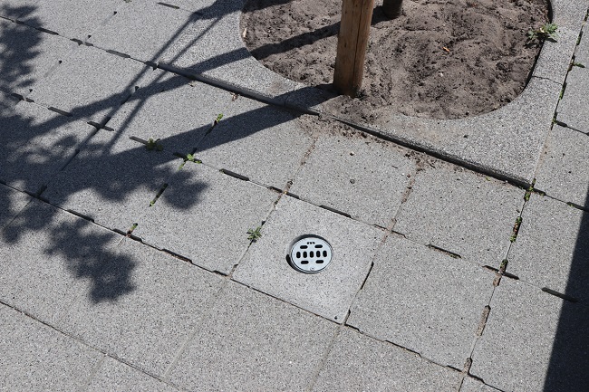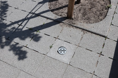 Waterpasserende tegels van beton zoals boomtegels en ventilatietegels kunnen gebruikt worden als waterdoorlatende bestrating in het trottoir. De openingen in de waterdoorlatende tegels zijn oorspronkelijk ontworpen voor de beluchting van bomen, maar kunnen ook dienen voor infiltratie in de onderlaag.