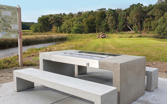 Aan betonnen parktafels en betonnen picknicksets kan uitgebreid geluncht worden in een kantoortuin of langs een fietsroute.