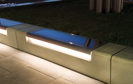 De Seat Solar is een robuuste betonnen bank met zonnepaneel en geïntegreerde USB oplaadpunten en/of LED-verlichting. Het stoere zitelement kan vrijstaand worden geplaatst, maar ook geïntegreerd worden in het zitranden programma Solids & Seats.