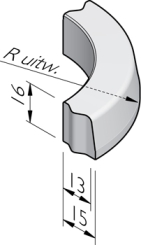 | straal = R (m) | lengte (cm) | aantal per 360° | uiterlijk standaard | uiterlijk lavaro |