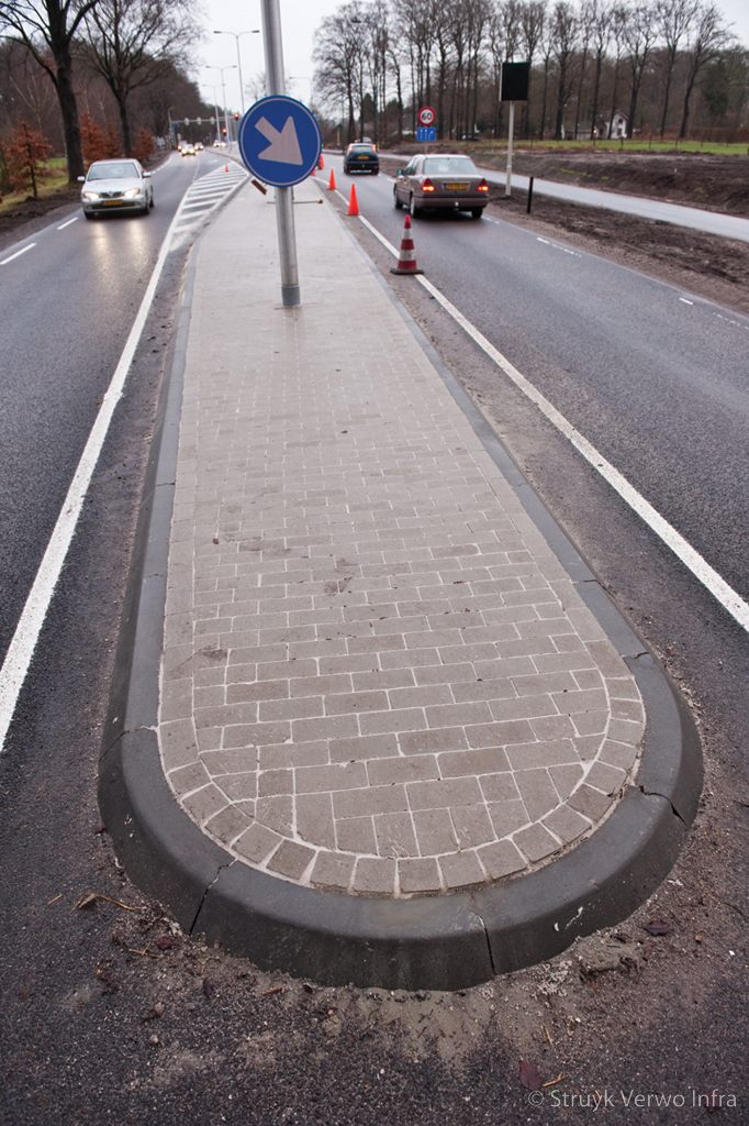 Neem contact opNa het uitzetten van de lijnen, dienen de banden geplaatst te worden in stelspecie. Controleer hoogte en lijnen alvorens een steunrug aan te brengen. De steunrug moet tenminste dezelfde breedte hebben als toegepaste band. De hoogte hangt af van de aan te brengen bestrating achter de band. Verdicht de rug zoveel mogelijk met een spade of troffel voor optimale sterkte na het uitharden.