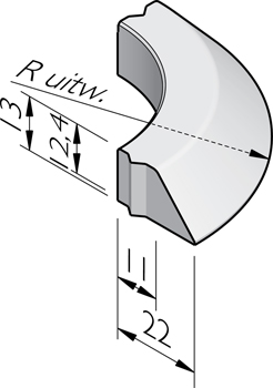 | straal = R (m) | lengte (cm) | gewicht (kg) | aantal per 360° | sluiting |