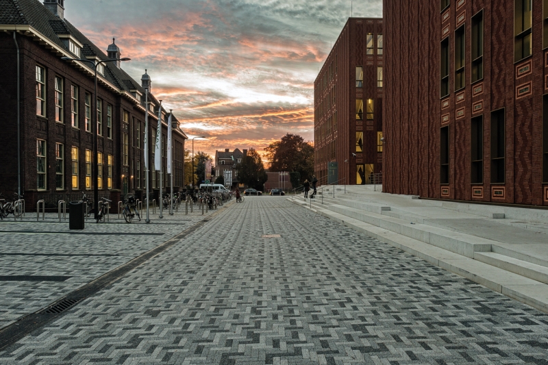 Het absoluut schoongeveegde straatwerk mag alleen in droge toestand, van laag naar hoog toe, afgetrild worden. Daarbij overlapt de trilplaat steeds de helft van de vorige baan.