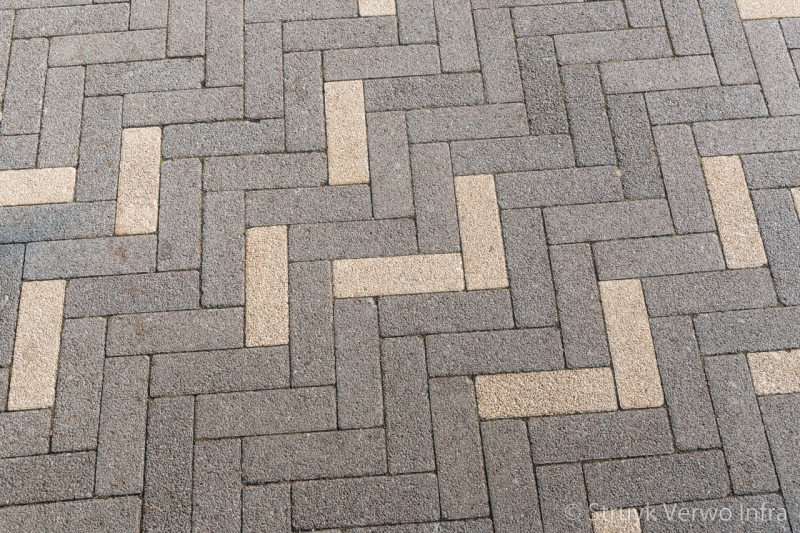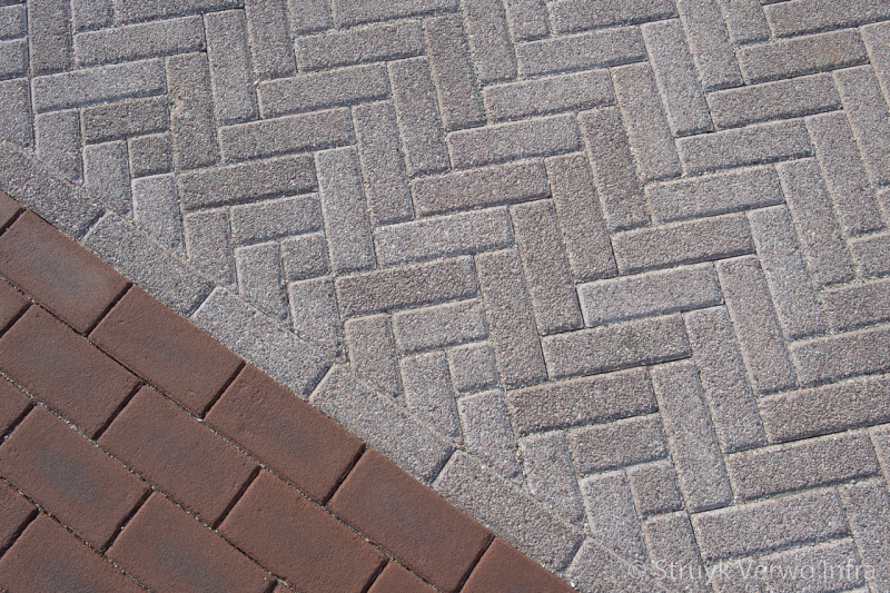 Het absoluut schoongeveegde straatwerk mag alleen in droge toestand, van laag naar hoog toe, afgetrild worden. Daarbij overlapt de trilplaat steeds de helft van de vorige baan.