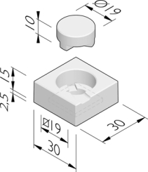 - 1 Aansluitbaar op PVC-buis Ø 125 mm of plaatsbaar op PVC-onderbak Ø 315 mm met afsluitkap waarin een sparing van 20x20 cm is aangebracht.