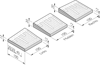 De verkeersplateau-elementen stapelen op een vlakke en stabiele ondergrond voorzien van drie steunpunten met behulp van stapelstenen (betontegels of klinkers van gelijke dikte). Zorg dat het onderste element vrij blijft van de ondergrond. De stapelstenen dienen loodrecht onder elkaar te worden gelegd (zie figuur 1). Elementen dienen één voor één opgestapeld te worden tot een hoogte van maximaal 4 stuks.Ondergrond / fundatie / legbed