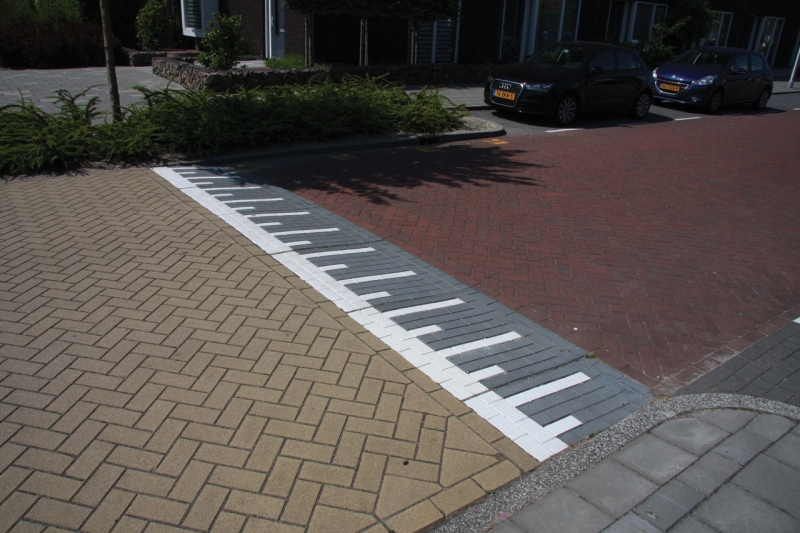 De verkeersplateau-elementen zowel in langs- als ook in dwarsrichting goed opsluiten.Verwerking in asfaltwegen
