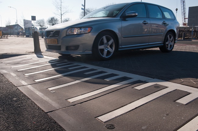 Personenauto's kunnen de busvriendelijke drempel niet ontwijken, terwijl bussen en ambulances er met de wielen langsrijden en geen hinder ondervinden.